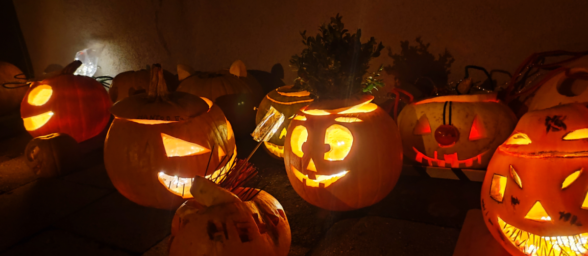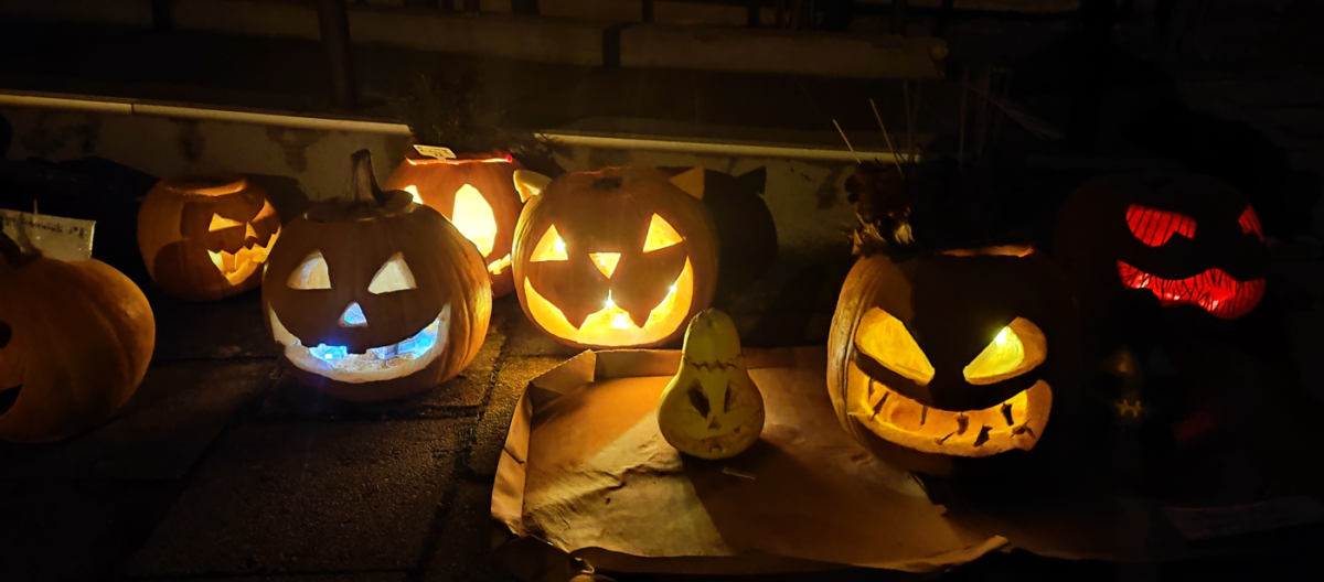 Mokiniai papuošė mokyklos kiemą nuostabiais, kūrybingai išraižytais moliūgais – šviečiančiais žibintais, kurie sukūrė ypatingą rudenišką nuotaiką.