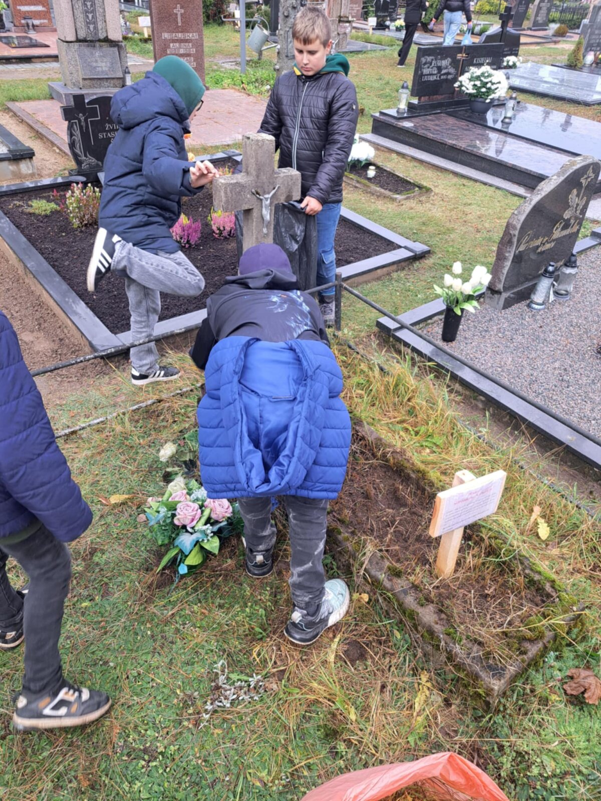 Rudenišką dieną 5a ir 5b klasės mokiniai kartu su savo mokytojomis išėjo į miesto senąsias kapines – ne pasivaikščioti, o atlikti prasmingą darbą. Vaikai nusprendė sutvarkyti seniai apleistus ir pamirštus kapus, pagerbdami tuos, kurių artimųjų galbūt jau nebėra.
