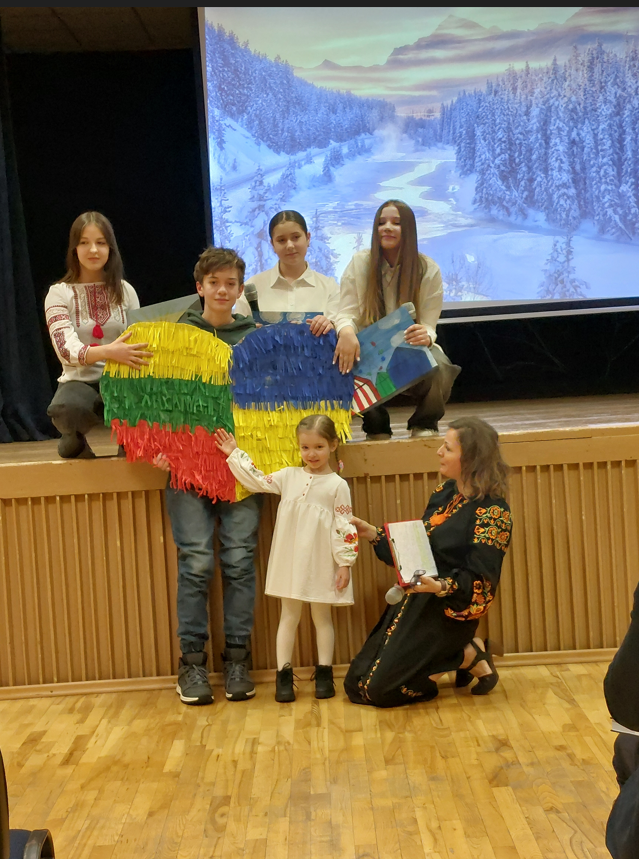 Mokiniai ukrainiečiai deklamavo lietuvių ir ukrainiečių kalbomis, kalbėjo apie tai, kaip jaučiasi Anykščiuose ir mokykloje. Visus sujaudino mokinių nuoširdūs žodžiai, jų atliekama muzika, nupiešti piešiniai. Džiaugiamės, kad mūsų kolektyve dirba mokytoja ukrainietė Horinova Olena, kuri pristatė, kaip sekasi vaikams integruotis. Kalbėjo kitos ukrainiečių bendruomenės narės.