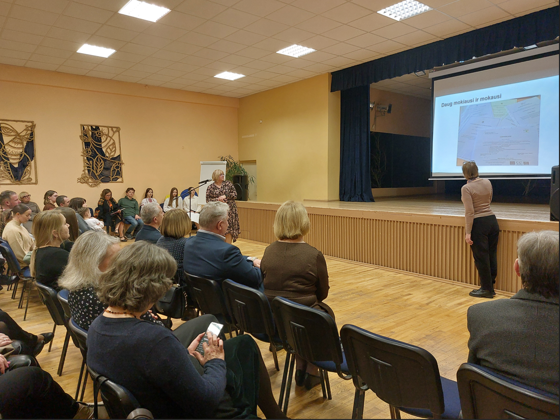 Lietuvių kalbos mokytoja ekspertė Dangira Nefienė kalbėjo apie lietuvių kalbos mokėjimo svarbą, kad mokiniai, o ir jų šeimos nariai jaustųsi saugiai. Mokytoja parodė praktinės veiklos pavyzdžių, kuriuos naudoja ugdymo(si) procese. Buvo atkreiptas dėmesys į komandinio darbo svarbą, nes tik tada galiam tikėtis laukiamo rezultato. Mokytojai ne tik mokosi individualiai, bet ir ieško galimybių tobulintis komandoje. Ne tik ieškome naujų priemonių ir būdų, kaip dirbti, bet ir dalyvaujame jų kūrime. Mokytoja pristatė programą, kurios kūrime dalyvavo. Tai puiki priemonė, kuria gali naudotis visi norintys: https://smp.emokykla.lt/kategorijos/perziura/ID7386/lietuviu-kalba-pagal-kalbos-mokejimo-lygius-a1-a2-ir-b1
