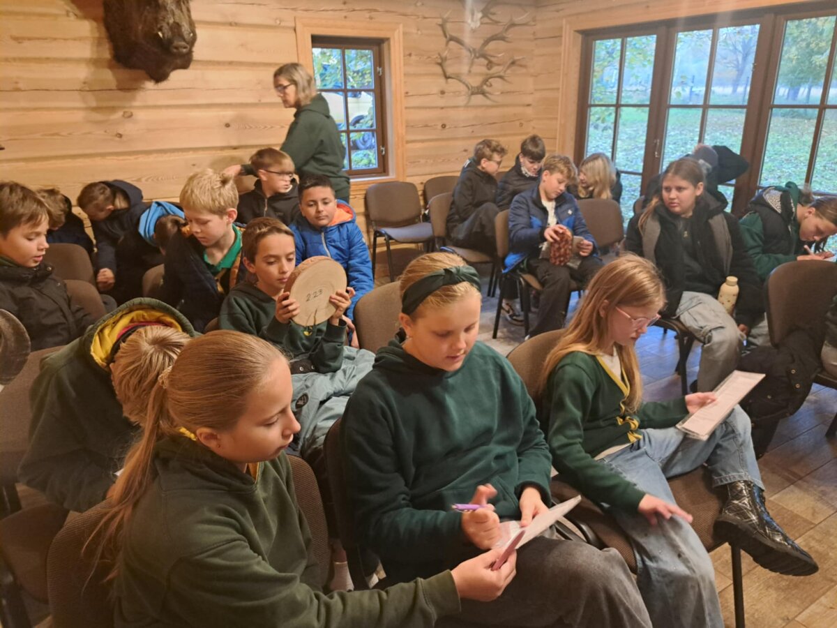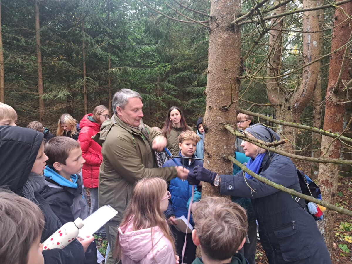 Spalio 14 ir 16 d. Anykščių Antano Baranausko pagrindinės mokyklos penktokai dalyvavo Mikierių girininkijoje miško pamokose, kurių metu susipažino su Anykščių krašto miškais, mokėsi matuoti medžių amžių, aukštį. Girininkas Laimis parodė ir pamokino, kaip naudotis prietaisais, medžio amžiaus (prieaugio/Preslerio) rankiniu grąžtu, lazeriniu matuokliu, kuriuos naudoja medžių matavimui. Paaiškino, kodėl reikia atlikti ir matavimus, ir retinimus, ir kirtimus miške. Mokiniai atsakė į klausimus, kokią naudą teikia miškas ir kodėl turime atsakingai elgtis, daugiau sužinojo apie DVT 13 tikslą, kai girininkas papasakojo, kodėl nudžiūna eglės mūsų miškuose. Kalbėjome apie tai, kodėl svarbu siekti įgyvendinti DVT 15 tikslą, nes taip saugoma augalija. Pamokų ciklą „Pamokos miške“ penktokams inicijuoja VMU, o įgyvendinti padeda Anykščiuose dirbantys specialistai Miglė, Gediminas ir jų kolegos. Ačiū jiems ir mokiniams.