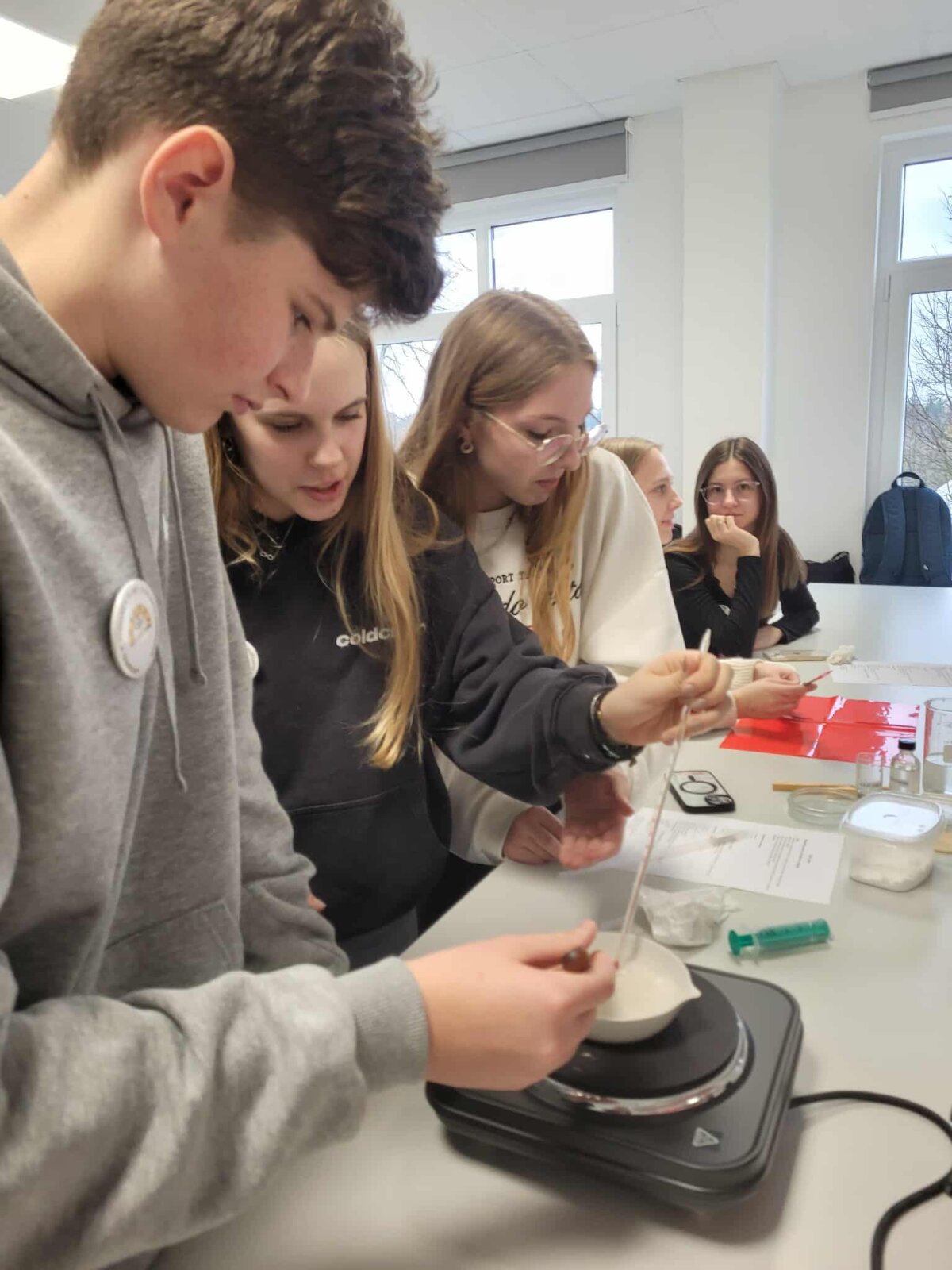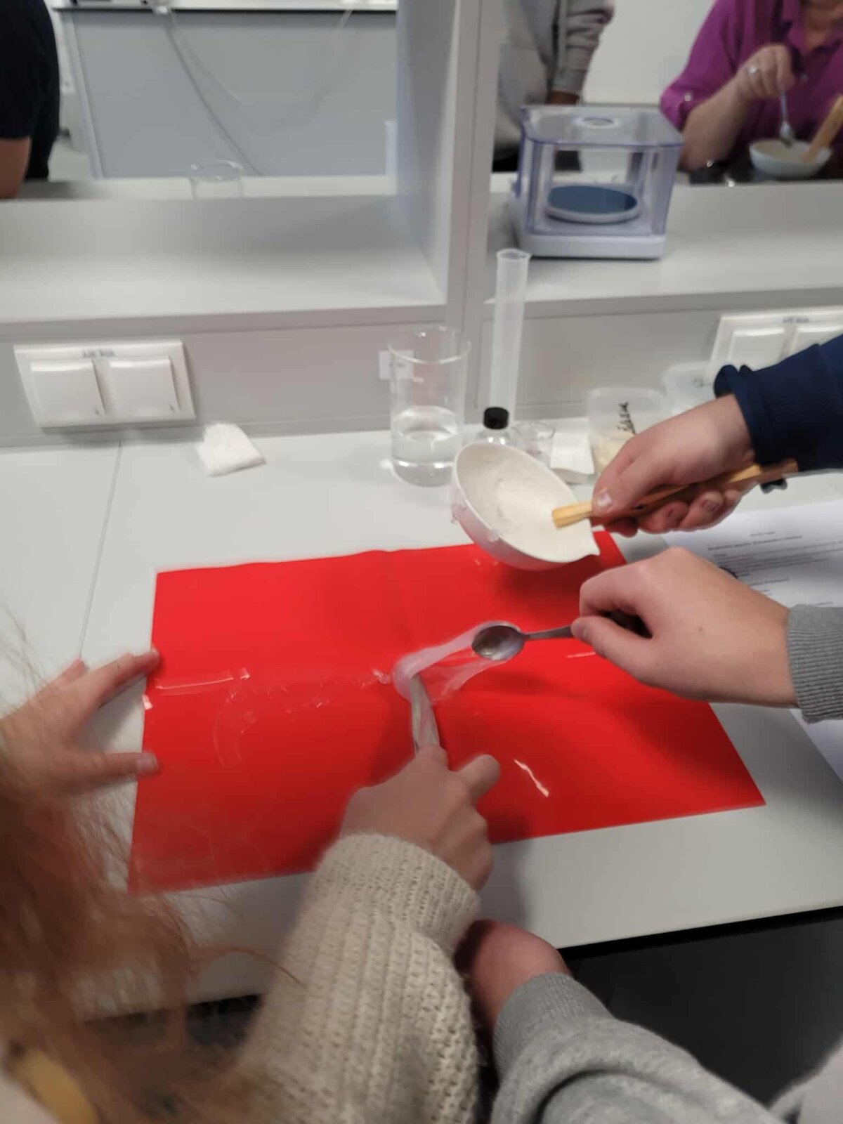 Pirmąją dieną dalyviai gamino bioplastiką iš krakmolo ir želatinos, tyrė jo savybes bei diskutavo apie plastiko poveikį aplinkai.