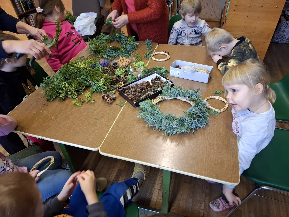 Kurklių St.Kairio ikimokyklinio ugdymo grupės vaikai leidosi į žiemišką nuotykį – klausėsi pasakos apie Advento stebuklus, kurią sekė bibtekininkė Gražina.