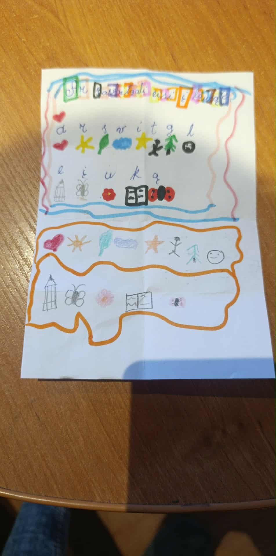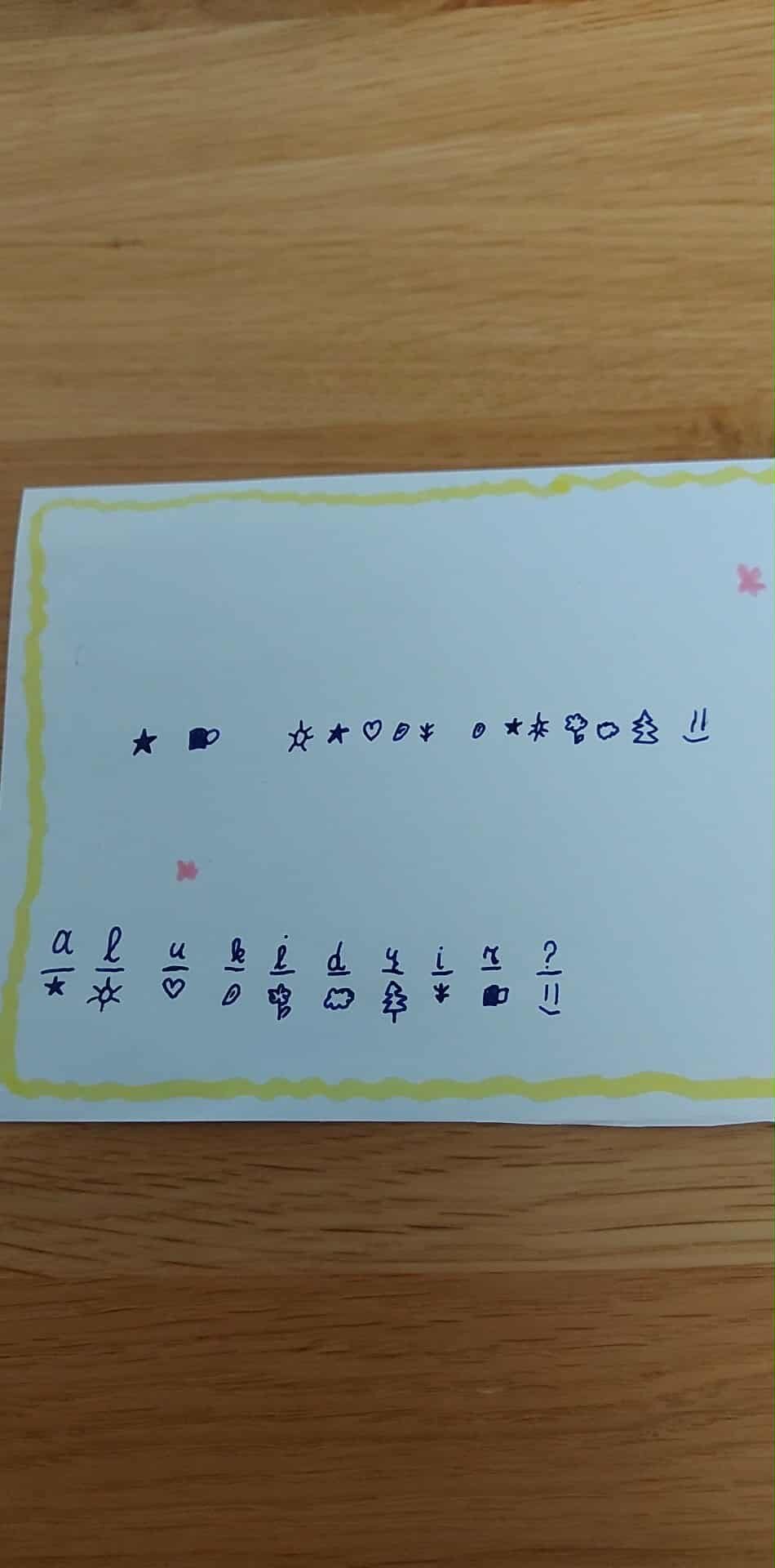 Mokiniai porose turėjo sukurti savo šifravimo sistemą. Užrašyti bent vieną sakinį.