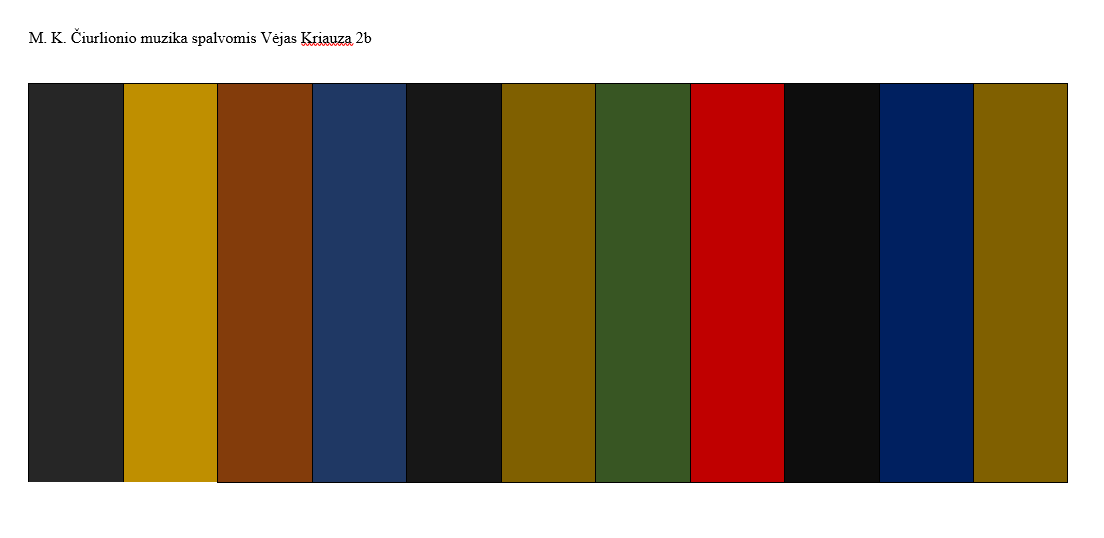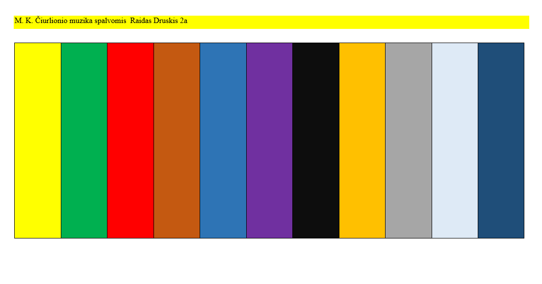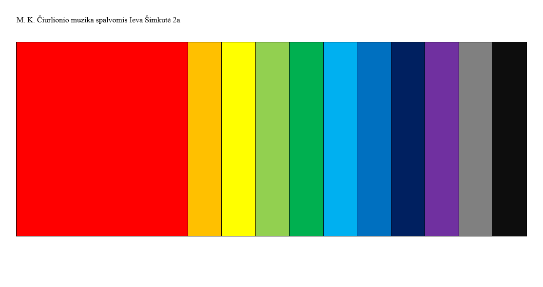 M. K. Čiurlionio kūryboje garsų struktūra persikelia į tapybą. Antrokai tyrinėjo, kaip muzika gali būti perteikiama spalvomis klausydami kūrinio https://www.youtube.com/watch?v=Fl9_0yyl3sk.