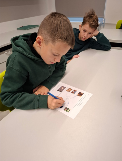 4c klasės mokiniai lietuvių kalbos ir literatūros pamokoje klausė tr...
