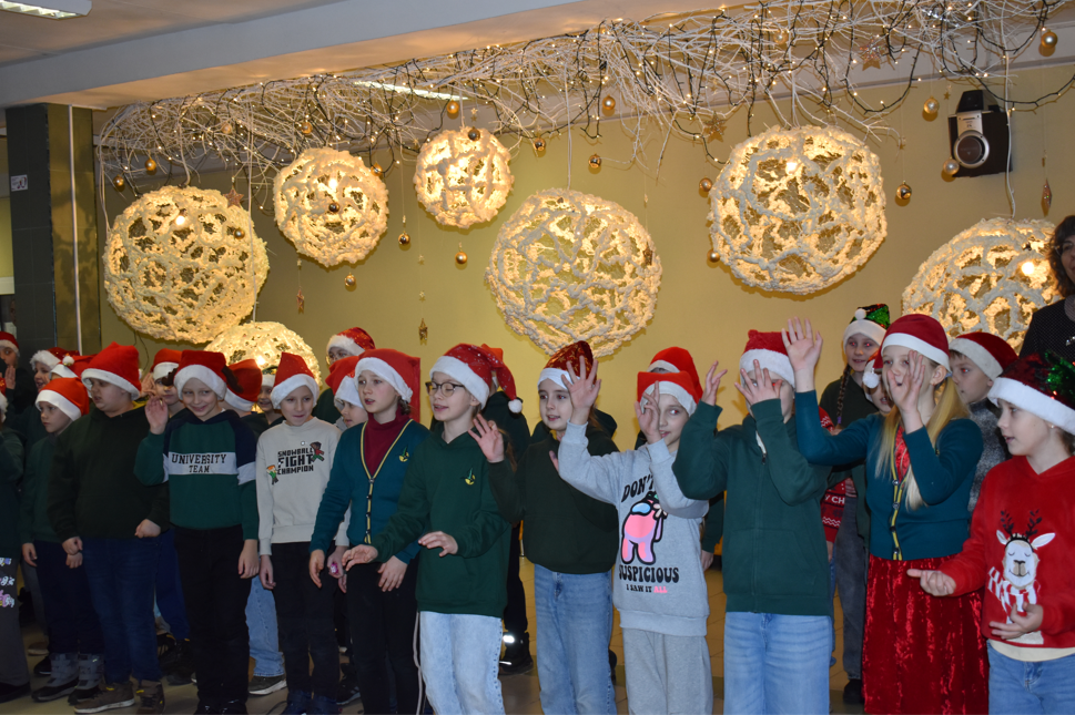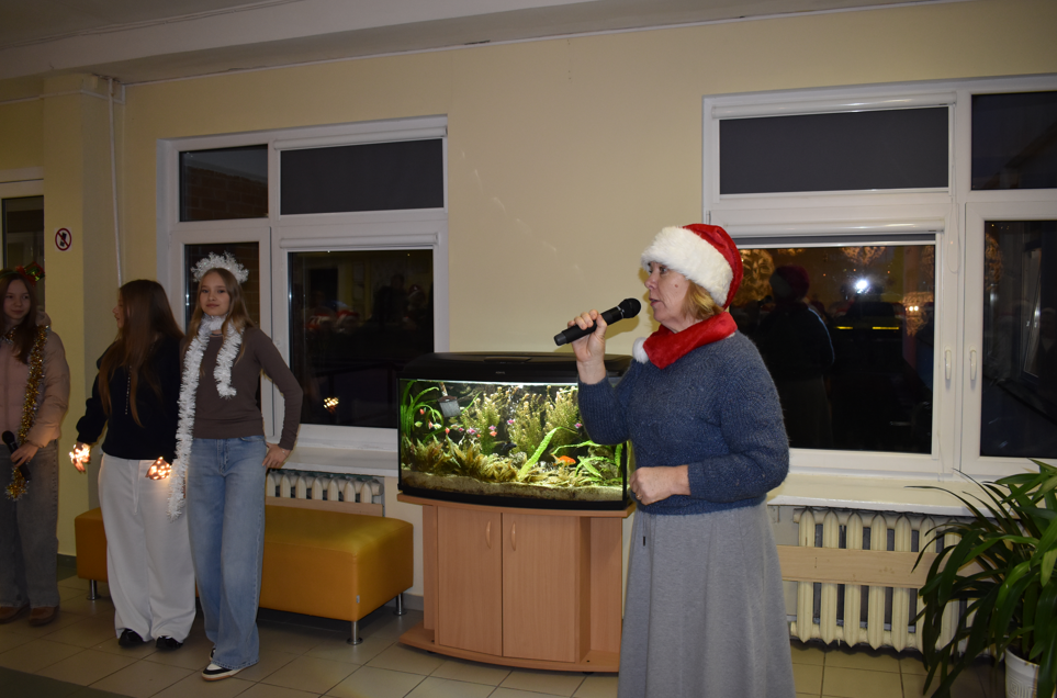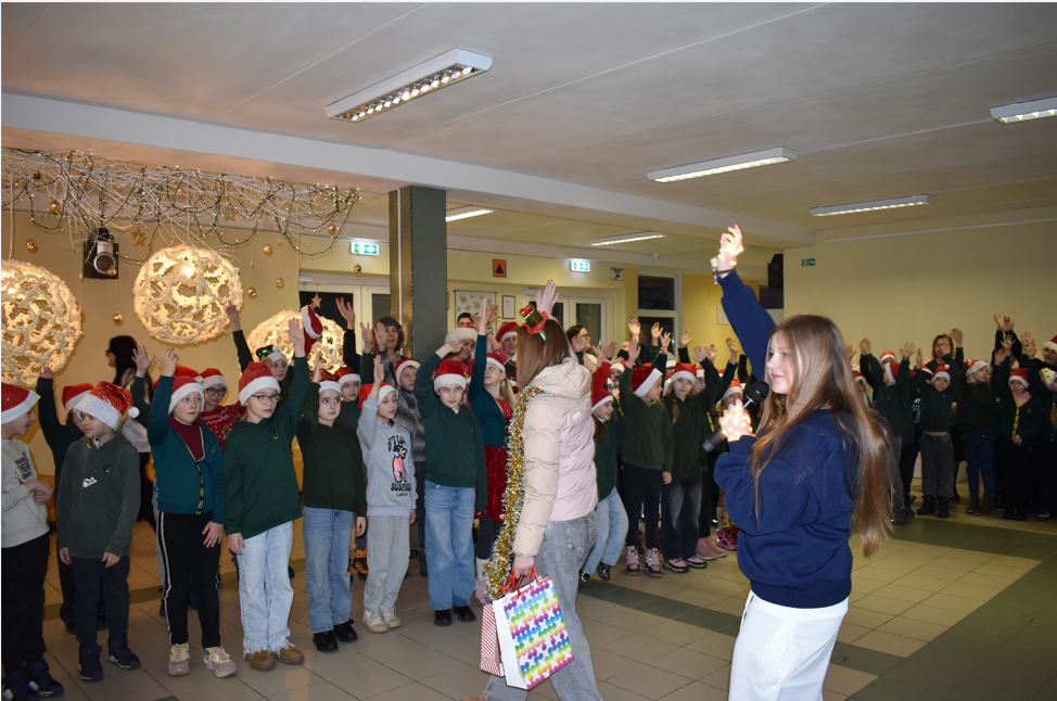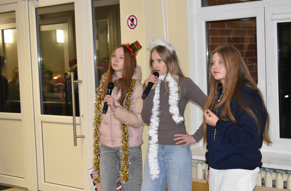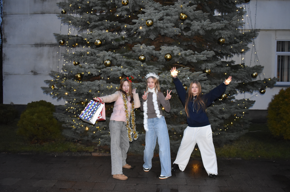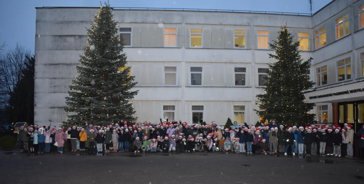 Ryte pliaupęs lietus privertė mokinius eglės įžiebimą stebėti pro langą, tačiau šventinė nuotaika liko. Trys šaunūs personažai – Snaigutė Krispė, Dovinis ir Vėjukas – kartu su vaikais ieškojo trijų šviesų: Džiaugsmo, Judesio ir Bendrumo. Trečios klasės mergaičių daina, smagi visų mankšta ir bendras 1–4 klasių pasirodymas „uždegė“ reikiamas šviesas. Galiausiai, su mokyklos direktorės pagalba, suskaičiavus iki trijų, eglė sužibo ryškiai ir šventiškai, nepaisant lietingo ryto.