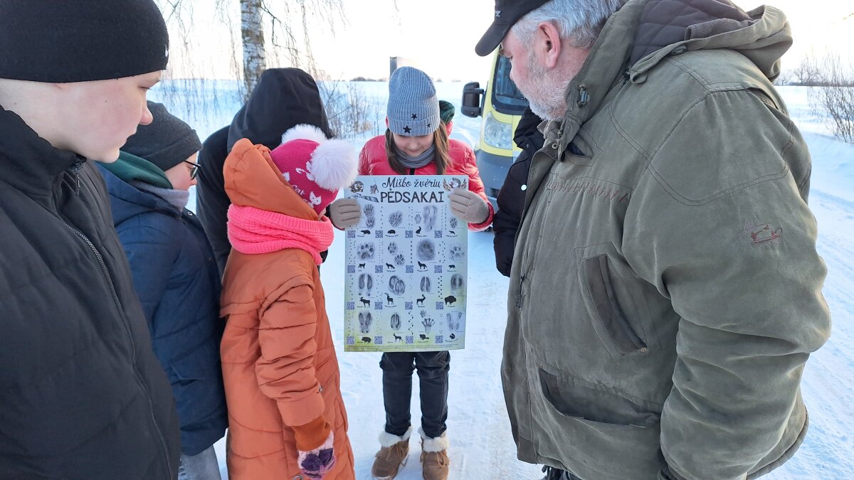 Šių metų sausio 27 ir 29 dienomis Anykščių Antano Baranausko pagrindinės mokyklos 5a ir 5b klasių mokiniai dalyvavo pamokose gamtoje. Šių pamokų tikslas buvo sužinoti, kaip prisitaiko gyvūnai, kad išliktų, atpažinti gyvūnų pėdsakus miško aplinkoje. Pamokos vyko netoli Paraisčių durpyno. Miškininkai Valdas Juodviršis, Edita Danilevičiūtė, Inga Mameniškienė mokino penktokus pamatyti ir atpažinti, kokio žvėries pėdsakai palikti sniege. Mokiniai matė kiškio, stirnos, lapės, lūšies pėdsakus. Miškininkai parodė, kaip atskirti briedžio patino ar patelės paliktus pėdsakus, palygino, kaip atrodo kiaunės ir kiškučio palikti pėdsakai. Mokiniai sužinojo, kaip žiemą maitinasi kurtiniai ir tetervinai. Sugrįžę į mokyklą, mokiniai atliko užduotis. Ačiū miškininkams už įdomias ir naudingas pamokas gamtoje šaltą snieguotą žiemą.