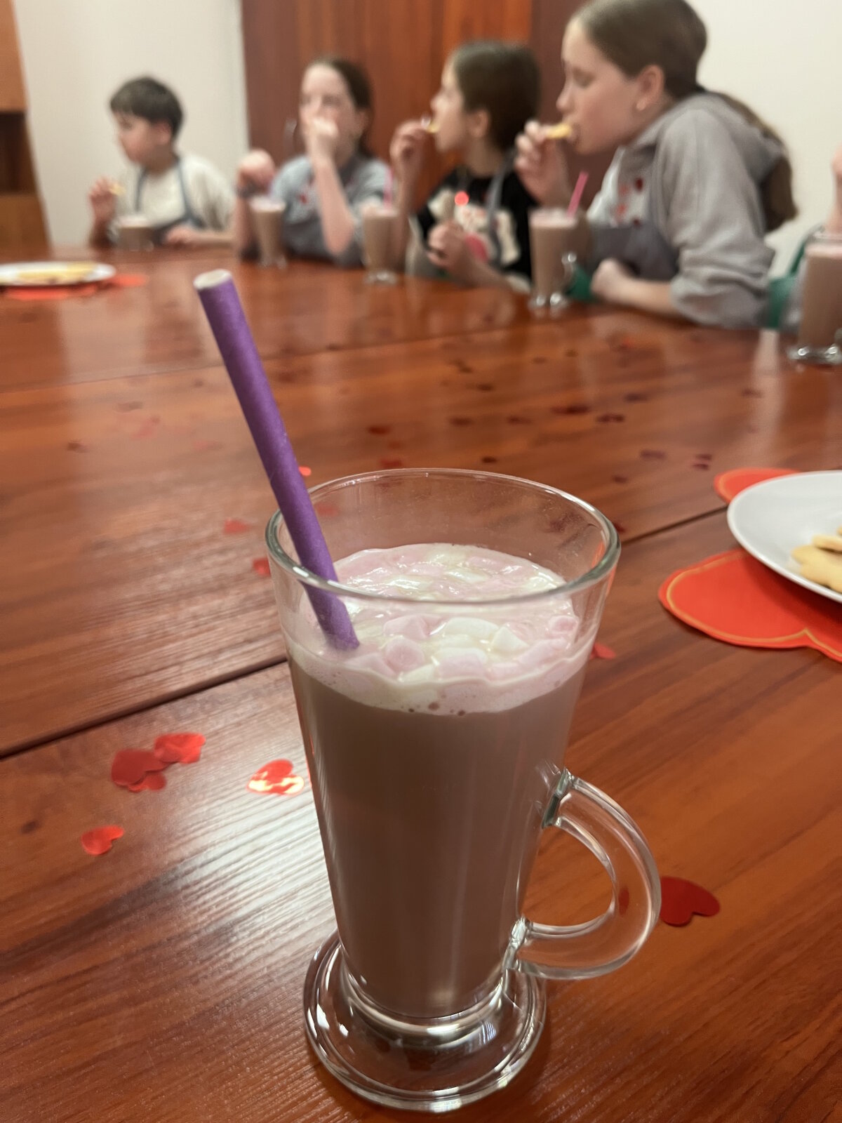 Baigę darbus visi susėdo prie bendro, šventiškai papuošto stalo. Jaukioje aplinkoje mokiniai mėgavosi savo pačių pagamintais sausainiais ir gardžia kakava, pagardinta zefyriukais. Ši veikla ne tik suteikė daug džiaugsmo, bet ir sustiprino klasės bendrystę bei kūrybiškumą.