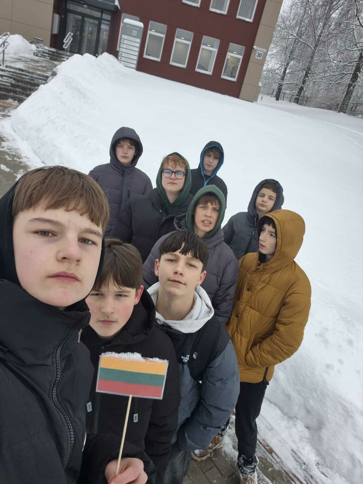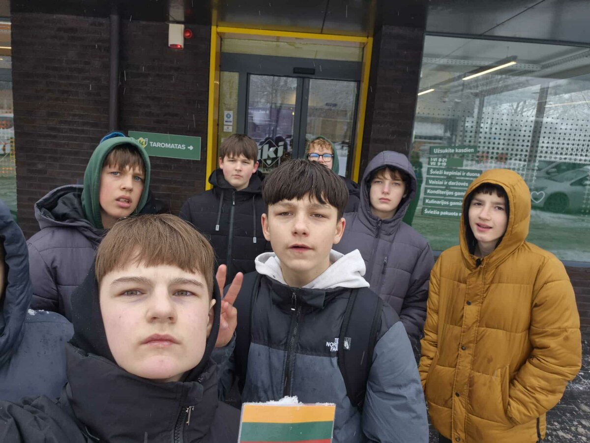 7b klasės mokiniai prieš Vasario 16-ąją dalyvavo orientaciniame pilietiškumo žaidime „Surask vėliavą, į kurį pakvietė jaunimo veiklų koordinatorė Anykščių viešojoje bibliotekoje Eglė Kaladytė.