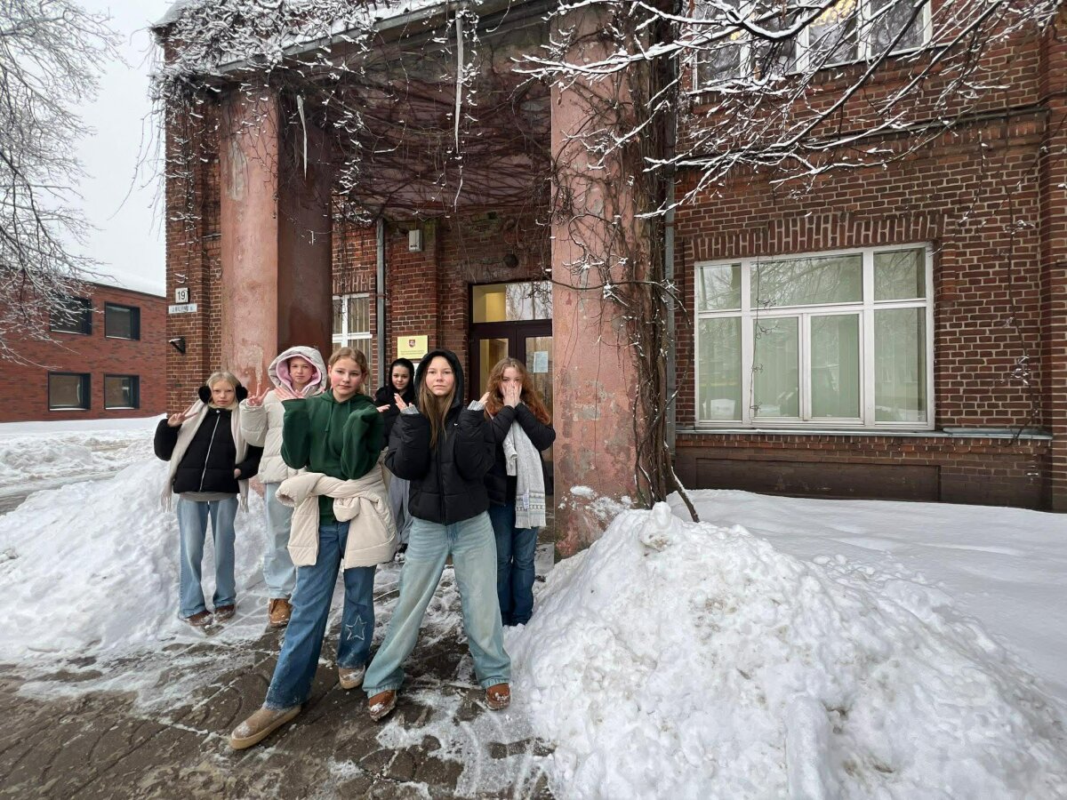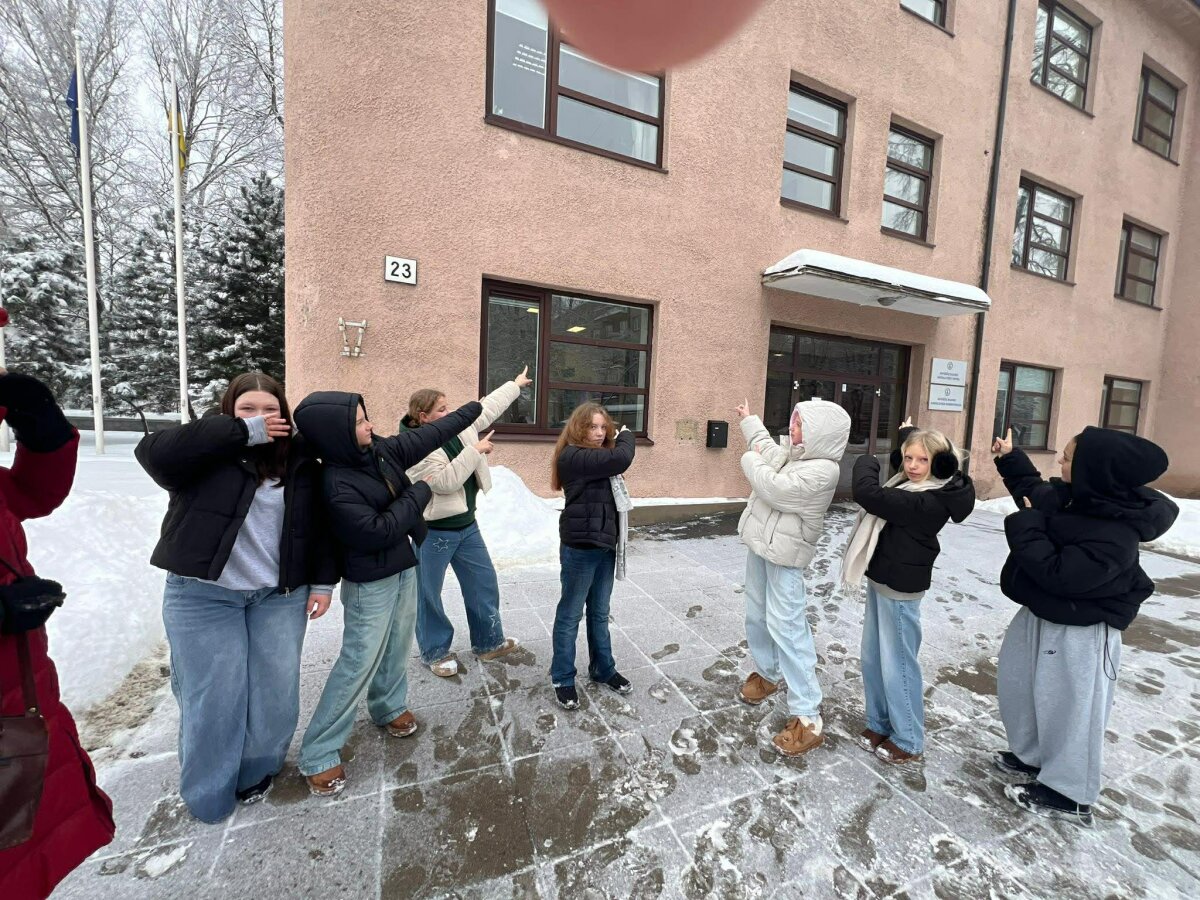 Pasiskirstę į dvi komandas leidomės į kelionę snieginu miestu – reikėjo surasti pagal programėlės nuorodas tam tikrą su valstybingumu susijusį objektą, surasti vėliavėlę, nusifotografuoti, įkelti nuotrauką prieš tai išklausius pateiktą informaciją.