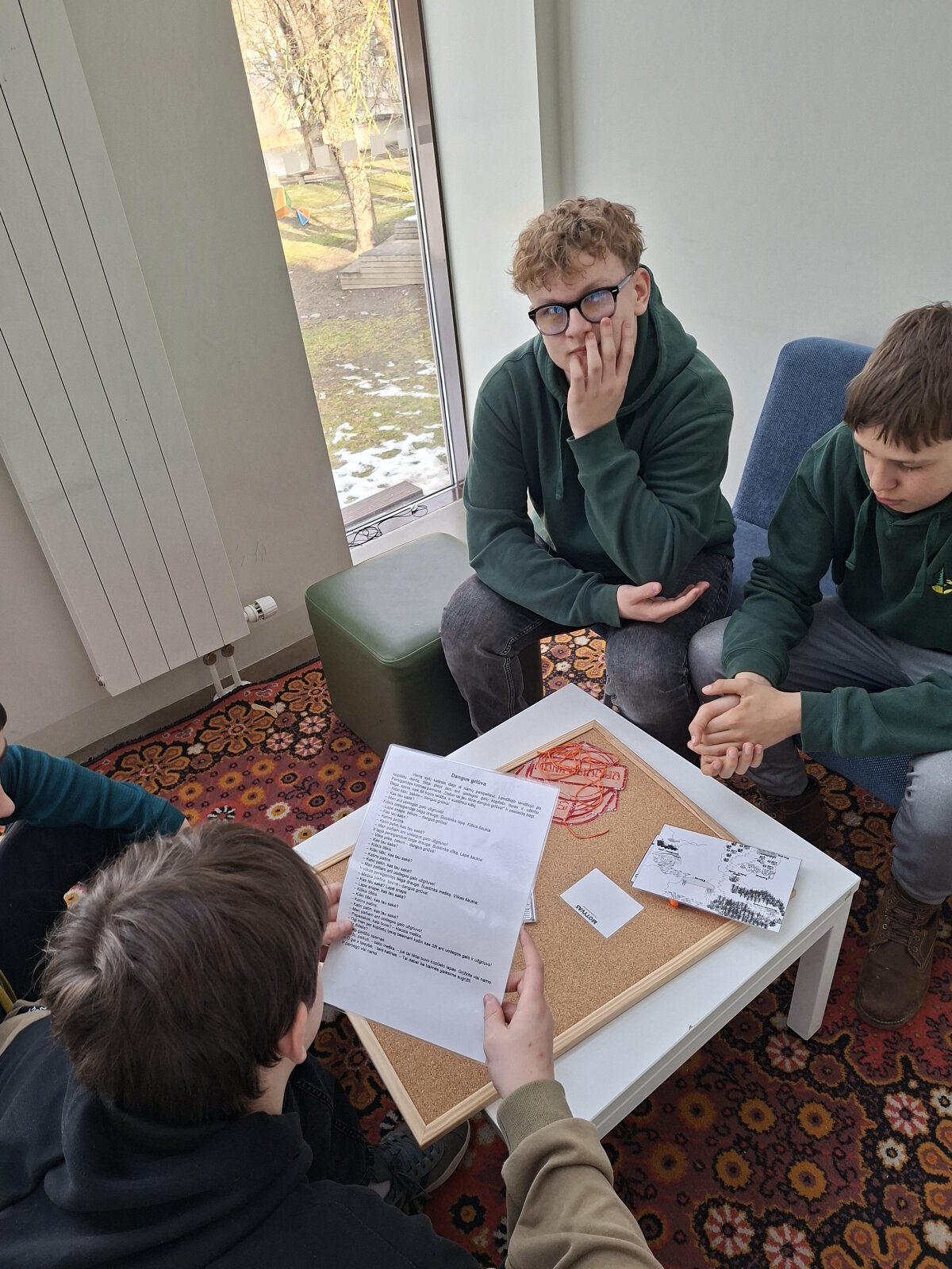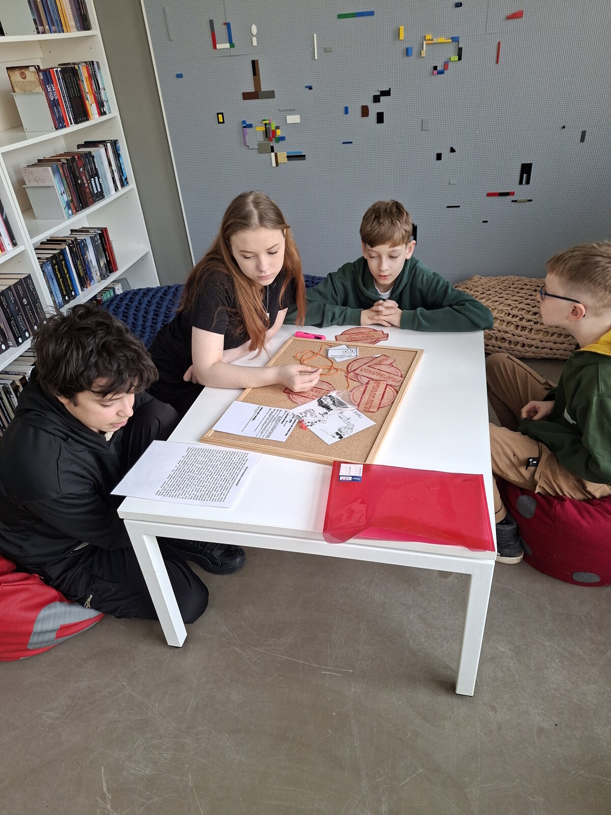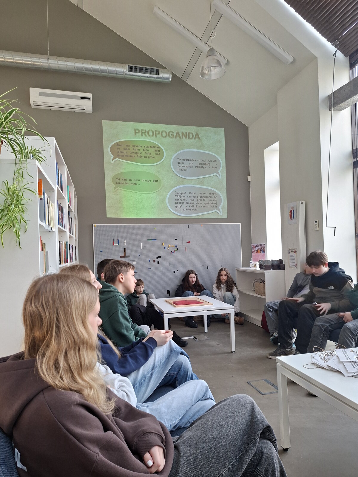 7b klasės mokiniai skubėjo į Anykščių L. ir S. Didžiulių viešąją biblioteką ir edukatorės Eglės pakviesti tapo pasakų detektyvais. Prieš pradėdami detektyvų veiklą mokiniai išsiaiškino, kas yra dezinformacija, misinformacija, malinformacija, propaganda, tapatybės vagystė.