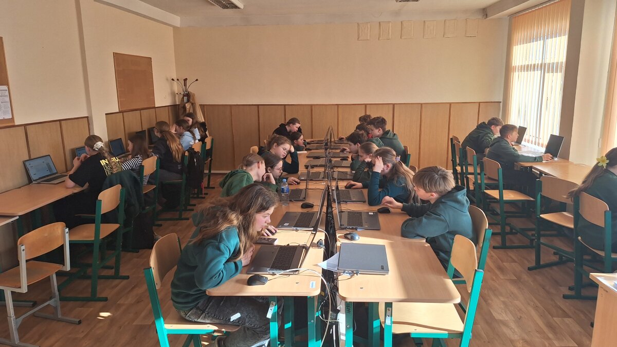 5–6 ir 7–8 klasių mokiniai atliko individualias užduotis olimpiadoje „Mes – miškui, miškas – visiems“. Tai olimpiada, kurioje savo žinias apie gamtą, biologiją ir miškininkystę galėjo pasitikrinti 5–8 klasių mokiniai iš visos Lietuvos dvejose amžiaus kategorijose.
