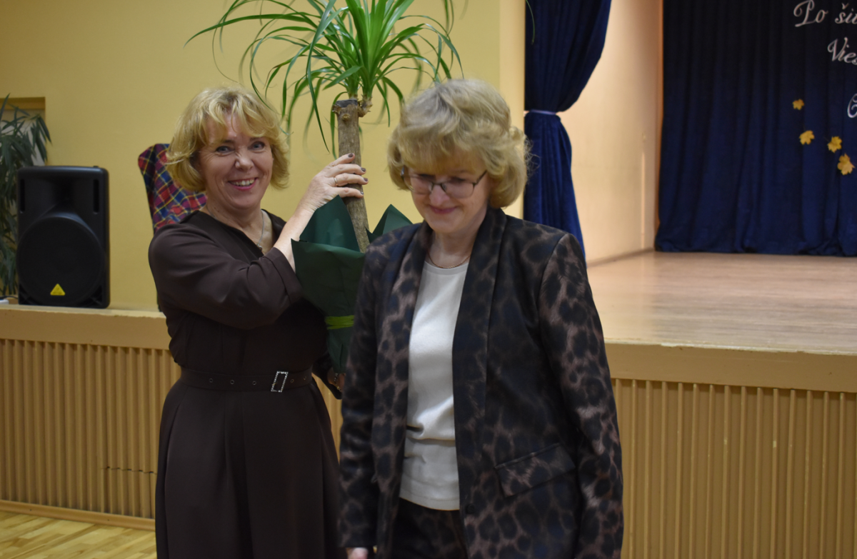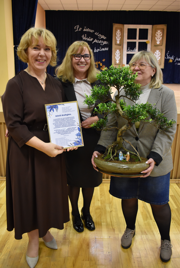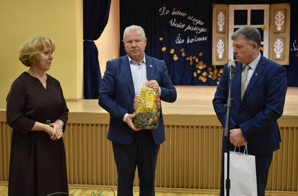 Šventėje skambėjo daug gražių žodžių, linkėjimų. Sveikino buvę mokyklos vadovai Antanas Žemaitis, Ona Repečkienė, Anykščių rajono savivaldybės meras Kęstutis Tubis, pavaduotojas Dainius Žiogelis, Švietimo skyriaus vedėja Žėrutė Semaškienė, buvęs tikybos mokytojas kunigas Simas Maksvytis. Smagu, kad atskubėjo kolegos, partneriai: Anykščių menų mokyklos direktorius Arūnas Maliukas, Rūta Pelegrimienė, Sporto centro direktorius Arvydas Krikščiūnas, Antano Baranausko ir Antano Vienuolio-Žukausko memorialinio muziejaus direktorė Audronė Pajarskienė, muziejininkas Antanas Verbickas, Aukštaitijos profesinio rengimo centro atstovai, rajono švietimo įstaigų vadovai.