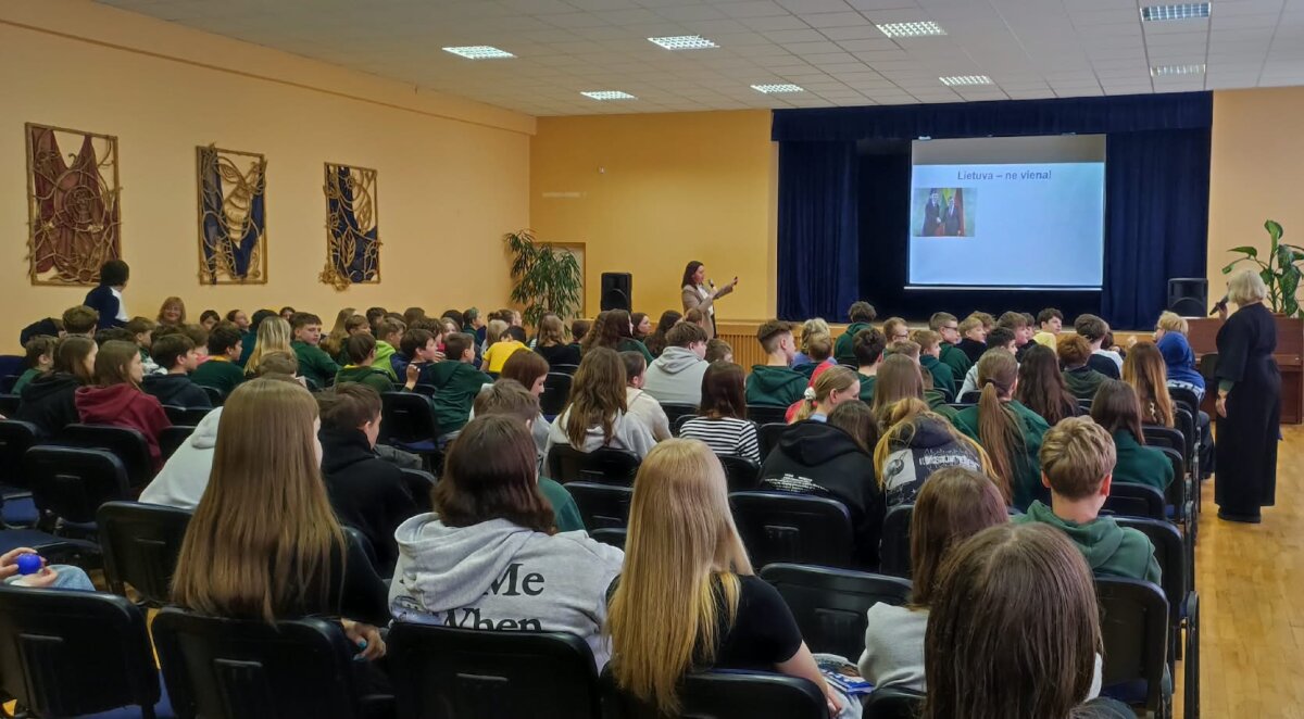 Į mokyklą atvykusios ministerijos diplomatės Simona ir Lina pasidalijo savo patirtimi, papasakojo apie kasdienį darbą, tarptautinius santykius bei atstovavimą Lietuvai užsienyje. Mokiniai sužinojo, kaip vyksta bendradarbiavimas tarp valstybių, kokie iššūkiai laukia diplomatų ir kokių savybių reikia norint dirbti šioje srityje.